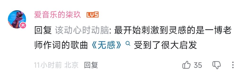 最开始刺激到灵感的是一博老师作词的歌曲《无感》受到了很大启发